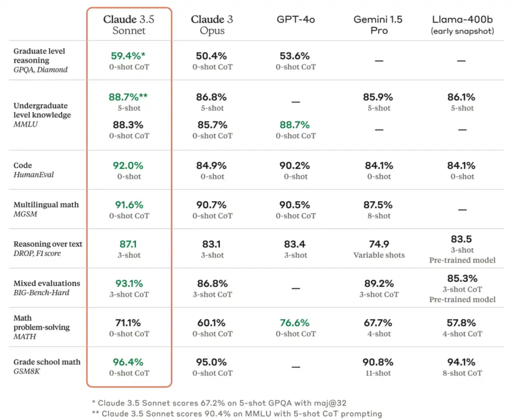 Merila niso nujno najboljši pokazatelj napredka AI, deloma zato, ker mnoga testirajo eksotične mejne primere, ki za povprečnega uporabnika niso uporabni, na primer odgovarjanje na vprašanja iz zdravstvenih izpitov. Vendar, če je to kaj vredno, Claude 3.5 Sonnet komaj prekaša vodilne konkurenčne modele, vključno z nedavno predstavljenim modelom GPT-4o od OpenAI, na nekaterih merilih, proti katerim je bil testiran.