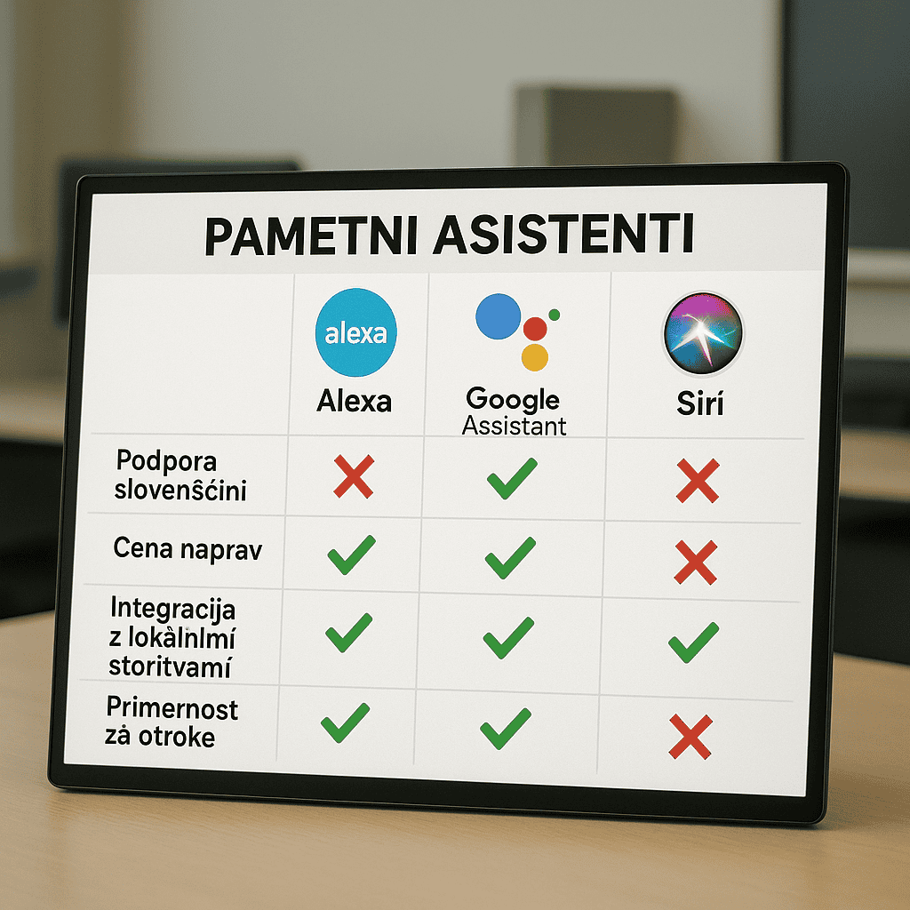 **Sklep:** Alexa ostaja tehnološko napredna, vendar zaradi pomanjkanja uradne podpore slovenščine in šibke integracije z lokalnimi rešitvami izgublja korak pred Google Assistantom, ki postaja bolj naravna izbira za povprečno slovensko družino. Pri nakupu bodite pozorni predvsem na vprašanja jezika, zasebnosti in lokalne podpore, saj te podrobnosti v praksi pomenijo razliko med res uporabnim pametnim asistentom in le lepo oblikovano, a omejeno napravo.
