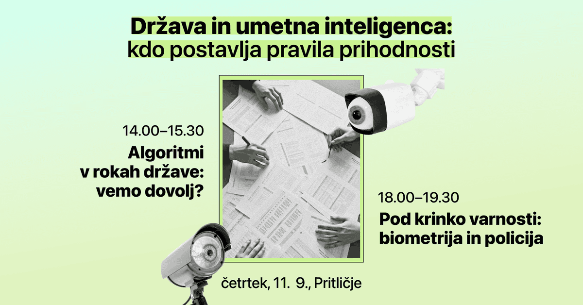 Z domačimi in tujimi sogovorniki bomo razmišljali, kakšna pravila mora država upoštevati, ko uporablja umetno inteligenco. Predstavili bomo predlog za vzpostavitev registra umetne inteligence v javni upravi in raziskovali, kakšne varovalke nas lahko zaščitijo pred nevarnostmi vladanja z algoritmi.
