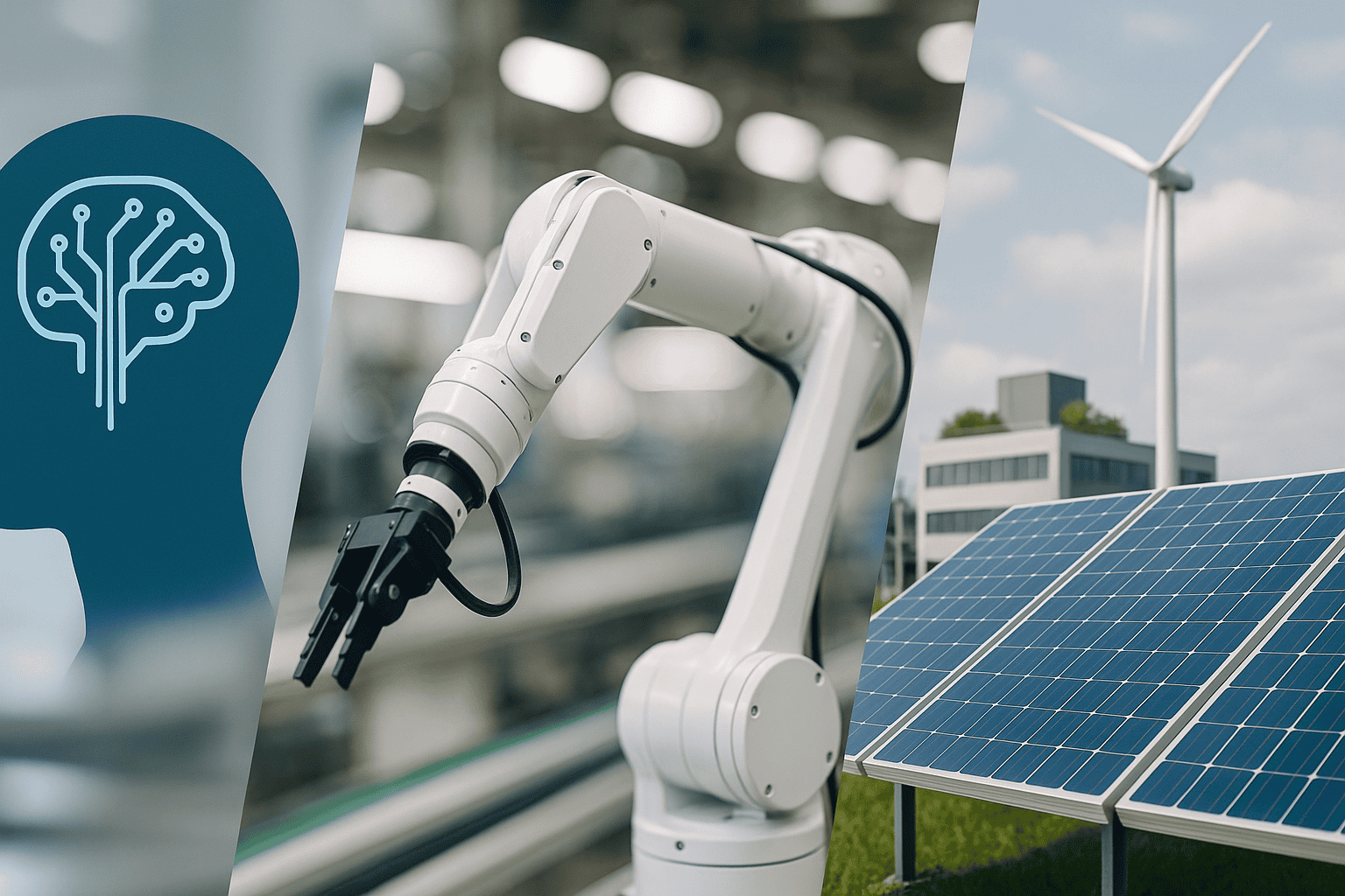 Med panogami obstaja močna povezava. **Podjetja, ki uporabljajo umetno inteligenco za izboljšanje energetske učinkovitosti ali optimizacijo industrijskih postopkov**, dosegajo prednost pri vlagateljih, saj iščejo rešitve z oprijemljivimi učinki in dolgoročnim vplivom. Tako razvoj UI ni omejen le na programsko opremo, ampak se preliva v proizvodnjo, logistiko in trajnostne dejavnosti. To postavlja temelje za nove poslovne modele, ki so odporni na spremembe v okolju in regulativi.
