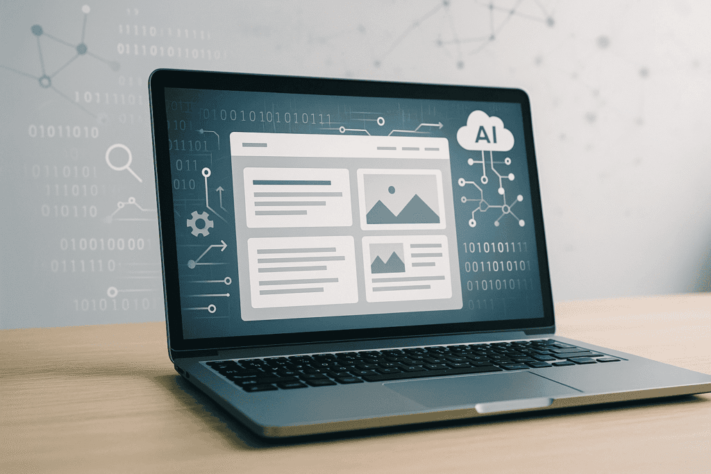 Med pomembnejšimi primeri je tudi platforma Wix ADI, ki temelji na analizi potreb uporabnika preko vprašalnika in nato na podlagi prepoznanih vzorcev samodejno postavi stran s slikami, besedili in celo SEO optimizacijo. Wix ADI uporablja strojno učenje, da prepozna panogo podjetja in predlaga primeren dizajn. Podobno tehnološko usmerjene rešitve razvijajo tudi startupi, kot je Bookmark s svojim asistentom AIDA, kjer je cilj, da **uporabniki brez tehničnega znanja pridejo do profesionalne spletne strani v izjemno kratkem času**.