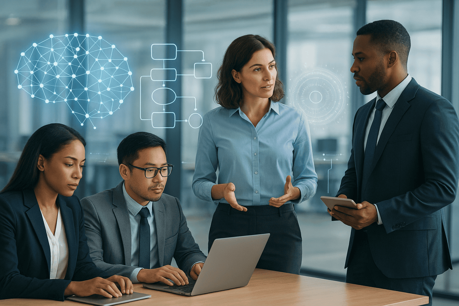 Etične dileme in odgovornost. Povečanje avtomatizacije prinaša vprašanja o pristranskosti modelov, varovanju zasebnosti in vplivu na delovna mesta. Podjetja, kot sta Microsoft in Google, so zato razvila notranje kodekse za etično uporabo umetne inteligence, vključno z orodji za spremljanje odločitev AI, preverjanje pristranskosti in izobraževanje zaposlenih o etičnih tveganjih. V praksi to pomeni, da morajo biti vse rešitve transparentne in presojane z vidika vpliva na zaposlene in družbo.
