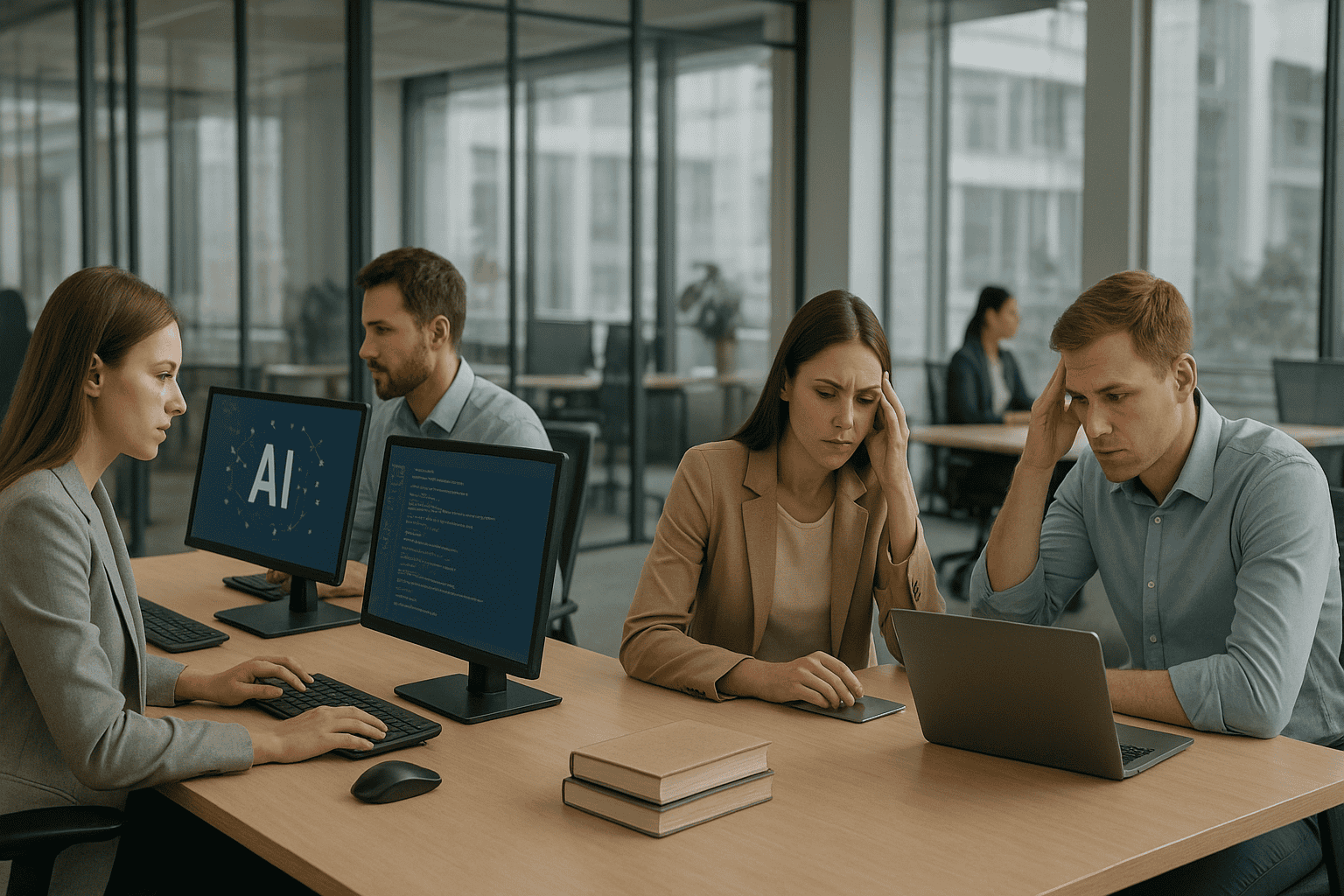 Vodje kadrovskih služb v večjih slovenskih podjetjih opažajo, da se zaposleni z novimi AI orodji pogosto počutijo negotove ali preobremenjene. V enem izmed tehnoloških podjetij so izpostavili primer, kjer so po uvedbi orodja za avtomatsko analiziranje podatkov uvedli tudi mentorski program, v katerem so naprednejši sodelavci v treh mesecih pomagali več kot 40 kolegom razviti osnovna AI znanja. Po njihovih besedah so se odnosi v ekipi izboljšali, padla pa je tudi raven odpora do sprememb.