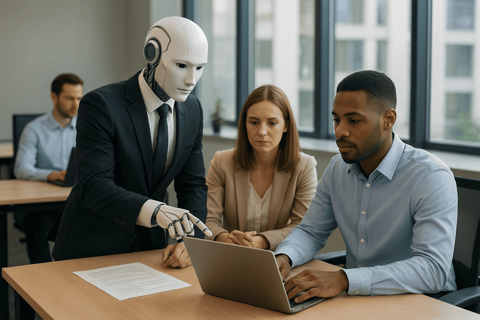 Nekatera tehnološka podjetja v Skandinaviji in ZDA so že poskusila z uvedbo AI kot delno avtonomnega menedžerskega sistema. V nekaterih primerih je AI prevzela dodeljevanje projektov in spremljanje napredka, pri čemer so zaposleni pohvalili doslednost, a hkrati opozorili na občutek zmanjšanega osebnega stika in možnosti za nevidno pristranskost v algoritmih. Eden izmed izzivov je bil, da je AI pogosto dodeljevala projekte tistim, ki so v preteklosti že imeli visoko oceno učinkovitosti, s tem pa zanemarjala razvoj manj izkušenih članov ekipe.