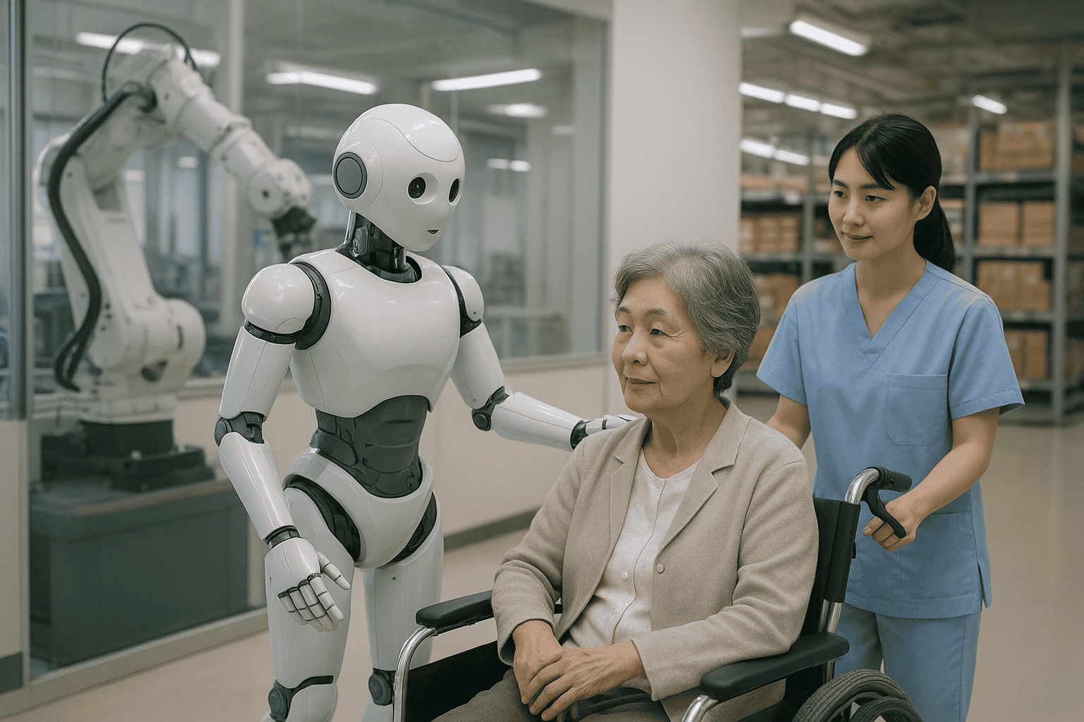 V zdravstvenem sektorju robotske platforme, kot je robota Reifujin iz podjetja Cyberdyne, že testirajo v bolnišnicah na Okinavi za asistenco pri negi starejših. Ti roboti uporabljajo napredne senzorske sisteme ter se v realnem času odzivajo na potrebe pacientov. V logistiki je podjetje Mujin s svojimi avtonomnimi skladiščnimi roboti omogočilo, da je japonski logistični gigant Z-Logistics znižal operativne stroške za 20 odstotkov v prvem letu implementacije.