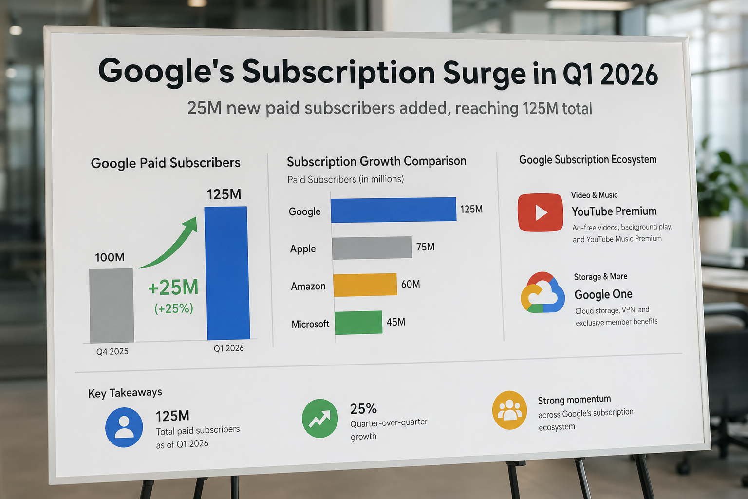 Google je v prvem četrtletju letošnjega leta presenetil tehnološko javnost z izjemno rastjo števila naročnikov na svoje plačljive storitve, saj je pridobil dodatnih 25 milijonov uporabnikov. Uspeh temelji predvsem na popularnosti YouTube Premium in Google One. Premik k naročniškemu modelu ni značilen zgolj za Google, temveč postaja osrednji trend v celotni industriji digitalnih vsebin in storitev, kar neposredno vpliva na uporabniške izkušnje ter razmerja na trgu.